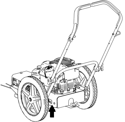 Gas-Powered Engines: The serial number is located on the left side of the trimmer axle plate, behind the wheel, and is 12 characters long. The serial number can also be found on the box near the barcode.