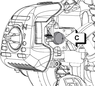 - Press the purge bulb (C) until fuel fills the bulb and flows back to the fuel tank through the clear line.