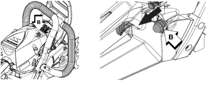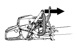 - Push the chain brake lever all the way forward to engage the chain brake before starting.