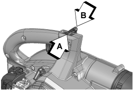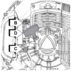 - Press the decompression device (B). If the unit is equipped with a purge bulb, press the purge bulb (B) until fuel enters the bulb.